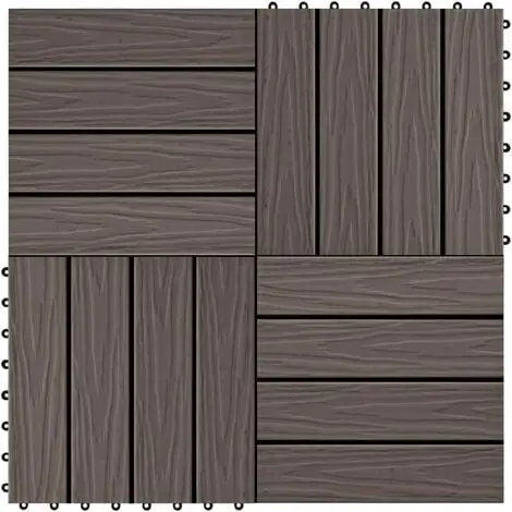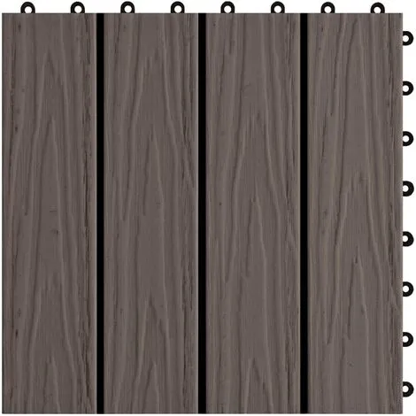 The deep-embossed WPC decking tile set, with an individual tile size of 30 x 30 cm, consists of 11 pieces and covers a total surface area of 1 square metre. It will give a clean look to your patio, balcony, bathroom, or your pool or spa area.