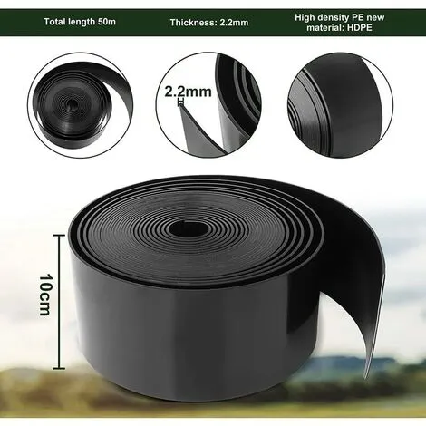 Size and color: Thickness: 2.2mm. Height: 10cm Length: 10m black