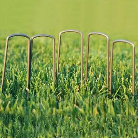 Tent pegs are ideal for securing weed membranes, drip pipes, netting, garden hoses, lawn seed pads, mulch rolls, weed control fabrics, landscape fabrics, bark mulch, pipes, cables, artificial grass, netting, etc.