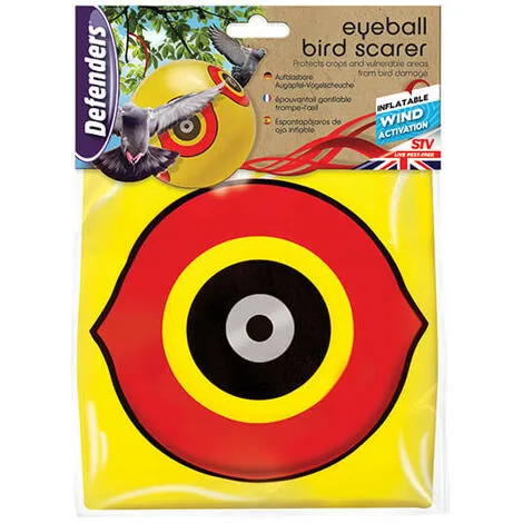 This inflatable eyeball with reflective eyes and a streamer tail is activated by wind movement and mimics in-flight predators.