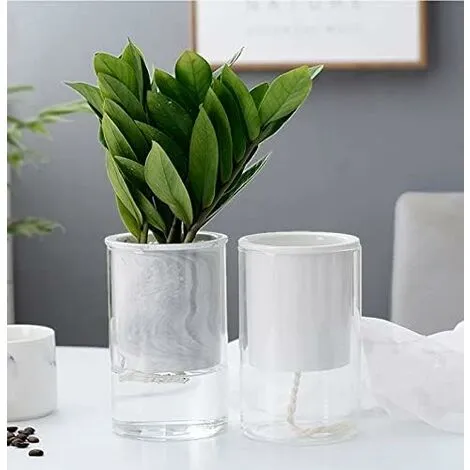 TWO-LEVEL DESIGN: The double-layer design can store excess water at the bottom of the flowerpot and feed them with a wick for your plants. The transparent tray allows you to see the water level and you can see it clearly at