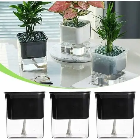 The flowerpot is equipped with water-absorbent cotton thread, and the plant can automatically absorb water to avoid frequent watering. The transparent color can take care of the amount of water at any time, so that the plant can grow