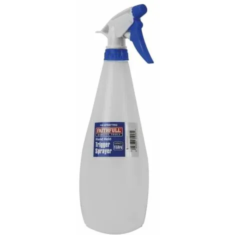 The Faithfull Hand Held Trigger Spray Bottle is perfect for use around the home and garden, and can be used to spray most water-based products such as cleaning fluids, water and food for plants, weedkillers, pest control (green fly & black fly) etc. The nozzle may be adjusted to provide a fine jet or a wide fan. Ideal for spray misting plants. The durable 1 litre bottle is graduated in 100ml increments to permit accurate measurement for easy mixing.