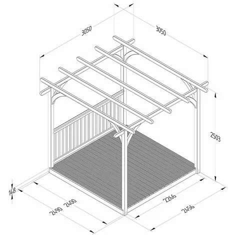 - Includes pergola, 8×8 decked area and 8ft balustrade (approximate measurements)