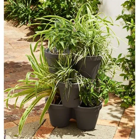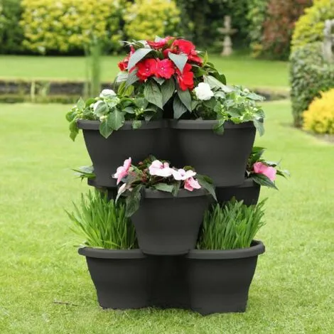 These pots can be used individually or stacked up to five high to form an attractive tiered planter.