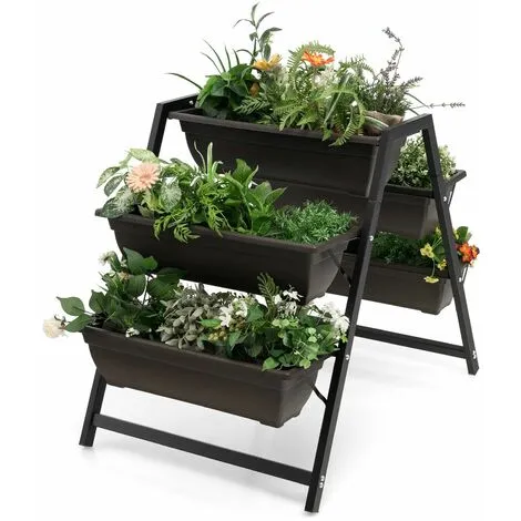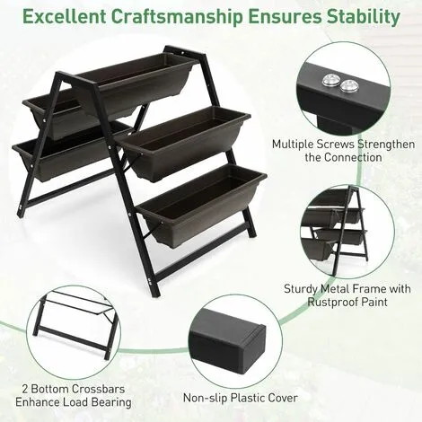 With the spirit of craftsmanship, our vertical garden beds are outstanding in terms of quality, capacity and details, making them a must-have for planting enthusiasts. Its 5 large-capacity garden boxes are staggered on both sides to ensure that different plants have enough space to grow healthily. Besides, each planter box is equipped with a drainage system so that plants can breathe and grow freely. And the 5 plant boxes are hung on hooks for easy removal, so you can take them down and replant at any time. In addition, the vertical garden bed is supported by a sturdy heavy metal frame that is strong and stable. And the planting box is made of high-grade PE, which is waterproof, smooth and shatterproof. What’s more, this garden bed has hidden handles, which makes it easy for you to move it. And compared to other garden beds with 5 planting boxes, our vertical garden bed has a more reasonable height, so you can easily take care of your flowers and plants.