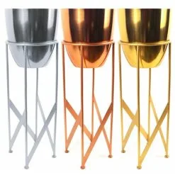 Beliani Tall Plant Pot Gardening Indoor Outdoor Flower Planter 35×42 Cm Grey Croton