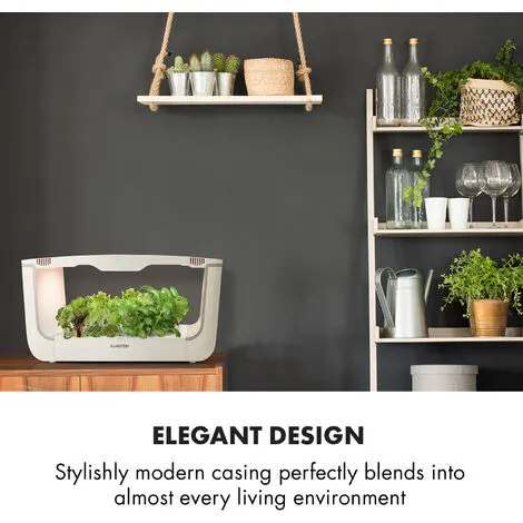 Discover home gardening with the Klarstein GrowIt Farm smart indoor garden. No matter whether you want to grow fresh herbs for seasoning or crunchy vegetables for the kitchen, you can always garden at will, in our smart Hydro-Farm you will almost always succeed – completely independently of location or soil. To support your success as a hydroponic gardener, this 36-piece complete set provides planters, seedling sponges, plant baskets and much more to make plant breeding a breeze.