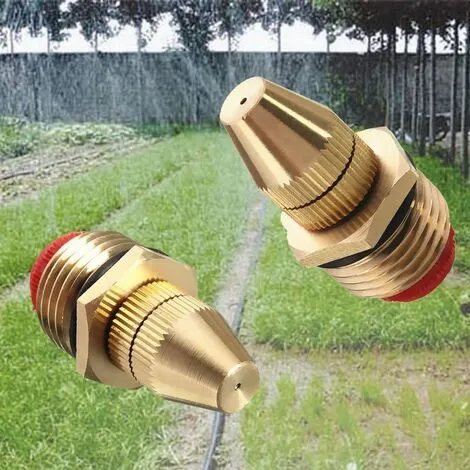 Product Description: 1/2 (DN15) brass adjustable spray nozzle for garden sprinklers water hose connection Brass nozzle can be adjusted according to different applications Applicable for fountains atomization, cooling proof, i Irrigation for small agriculture and lawn area. Features: Top quality product. Material: brass. Size: 14x42mm. Connection: external thread Interface dimensions: 1/2 ,4 points (DN15) Operating pressure: 2-4.5 kg. Jet diameter: 1-3 m. Features: Rotary switch, multi-stage change. Removable nozzle for easy cleaning Brings cool mist effect, making hazy sense Covered area of atomizer can be adjusted. It requires relatively low pressure. Package includes: 2 spray tips.