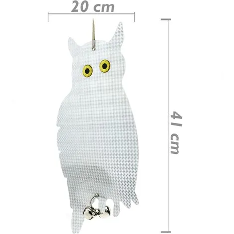 - It is a 40 cm tall owl that, when moved by the wind, emits a play of lights that frightens the rest of the birds. It also has large eyes reflective, that scare the rest of plagues.