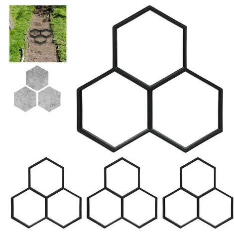 Design your garden individually with the reusable casting mould for concrete or cement. With the plastic stone slab mould, you create a decorative pattern of 3 hexagons, which you can repeat as often as you like to create a path or an expanse. Place the cement mould on a suitable surface, fill in concrete and smooth it with a trowel. The concrete stamp can be removed after a few moments and used again.