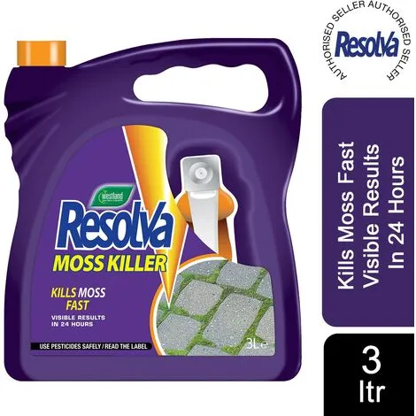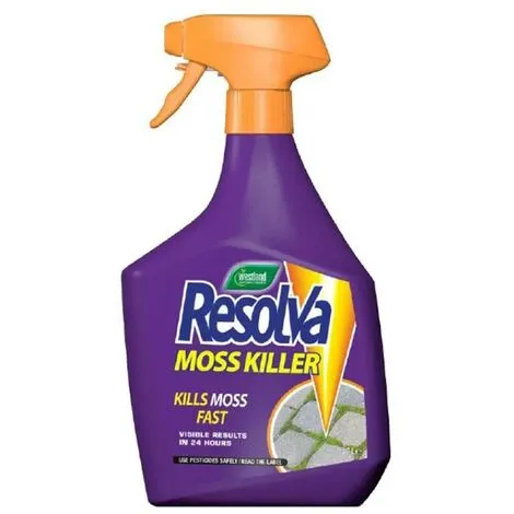 Resolva Moss Killer is ready to use formulation that effectively kills moss and algae on natural and permeable surfaces overlying soil (e.g. block paving, gravel, and decking)
