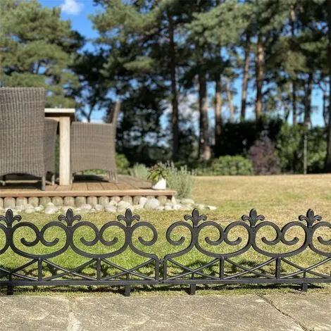 Black plastic ornamental lawn edging in a set of 10, these panels clip together easily to form a length 6m long in total.