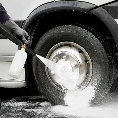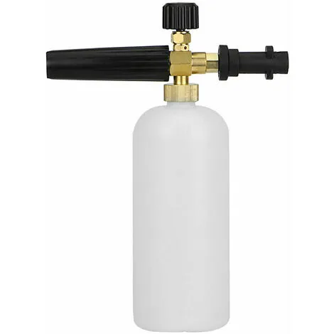The dial at the top to control the foam mixture, the surface of the bottle has a measuring guide line, easy to adjust the mixing ratio. Made of premium material, long using time. Large capacity, makes snow foam soft and fluffy, fun and simple, your touchless car wash. /> Compatible with Karcher K2 – K7 Pukkr pressure washer.