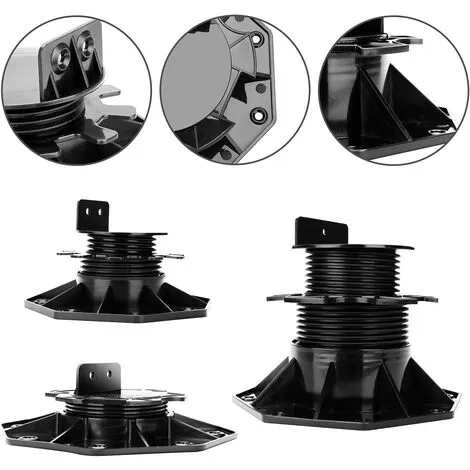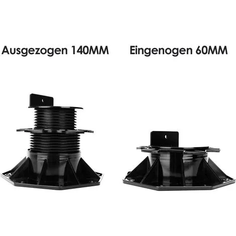 Adjustable height from 60 to 140 mm. Set of 4 L-shaped adapters for wood and WPC structures.