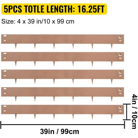 5 PCS steel landscape edging is 16.25 ft/4.95 m in total length to meet
