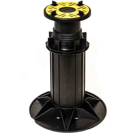 Manually adjustable height support pads for suspended paving and decking systems. Raise the slabs off the deck to improve drainage and optimise roof space. Create flat upper surfaces on sub-decks built to falls quickly and easily. The high quality solution for supporting raised stone slabs, promenade tiles or decking.