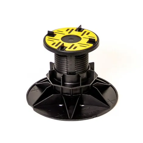Manually adjustable height support pads for suspended paving and decking systems. Raise the slabs off the deck to improve drainage and optimise roof space. Create flat upper surfaces on sub-decks built to falls quickly and easily. The high quality solution for supporting raised stone slabs, promenade tiles or decking.